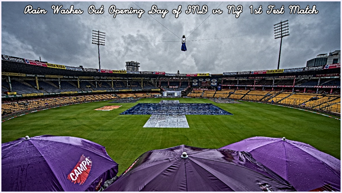 The opening day of the IND vs NZ 1st Test match was entirely rained out, preventing any play from taking place. Continuous light rain forced the umpires to abandon the day’s play at the Tea break. The match is set to commence early on Thursday, with the toss scheduled for 8:45 am IST and the start of play at 9:15 am IST, provided the weather conditions improve.