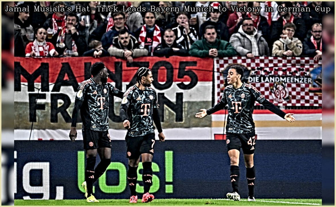 In an impressive display of skill, Jamal Musiala netted three goals in the first half, propelling Bayern Munich to a resounding 4-0 win against Mainz in the German Cup. This victory secured their spot in the last 16 of the competition. Musiala’s hat-trick featured a goal scored off a rebound and another from a loose ball in the penalty area just before the break. The match underscored Bayern Munich’s continued supremacy in the German Cup, a tournament they have consistently dominated.