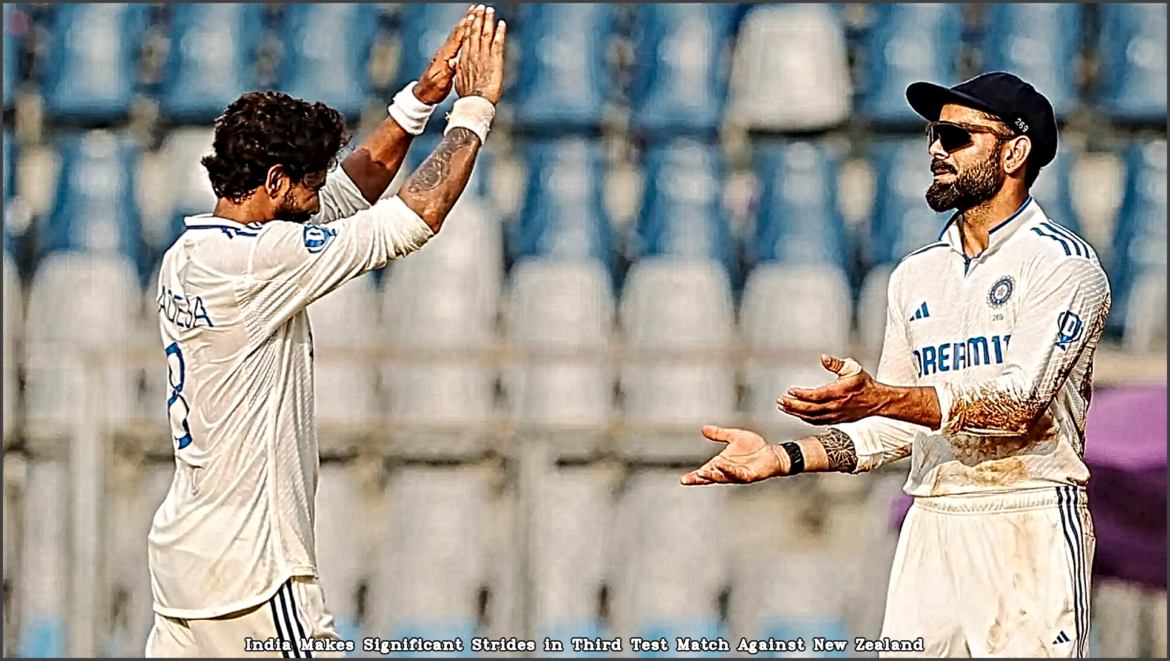 During the third Test match in Mumbai, India made significant strides towards victory on the second day. After scoring 263 runs in their first innings, India managed to bowl out New Zealand for 171/9. The spin bowlers, Ravichandran Ashwin and Ravindra Jadeja, were key players in this achievement, taking seven wickets between them. This greatly impacted the New Zealand batting order. With a lead of 143 runs and challenging pitch conditions, the next phase of the run chase is expected to be crucial.